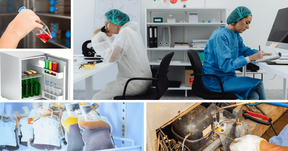 - Utilizado en refrigeradores de laboratorio y equipos de climatización.